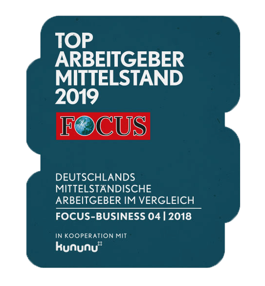 FOCUS-BUSINESS in Kooperation mit kununu.com haben Glück & Kanja als Top Arbeitgeber im Mittelstand für das Jahr 2019 ausgezeichnet.